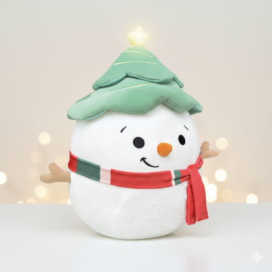 Christmas Snowman Noel Plush Toy with Tree Hat and Scarf 12in